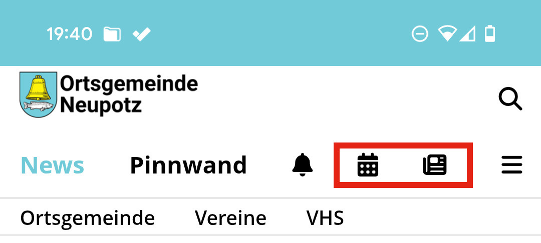 b99b8903-de73-49df-8ec7-906194b4309bIm Eventkalender (links) könnt ihr alle zukünftigen und uns bekanntgegebenen Termine einsehen, das Zeitungssymbol (rechts) führt euch direkt zum aktuellen Amtsblatt der Verbandsgemeinde Jockgrim!