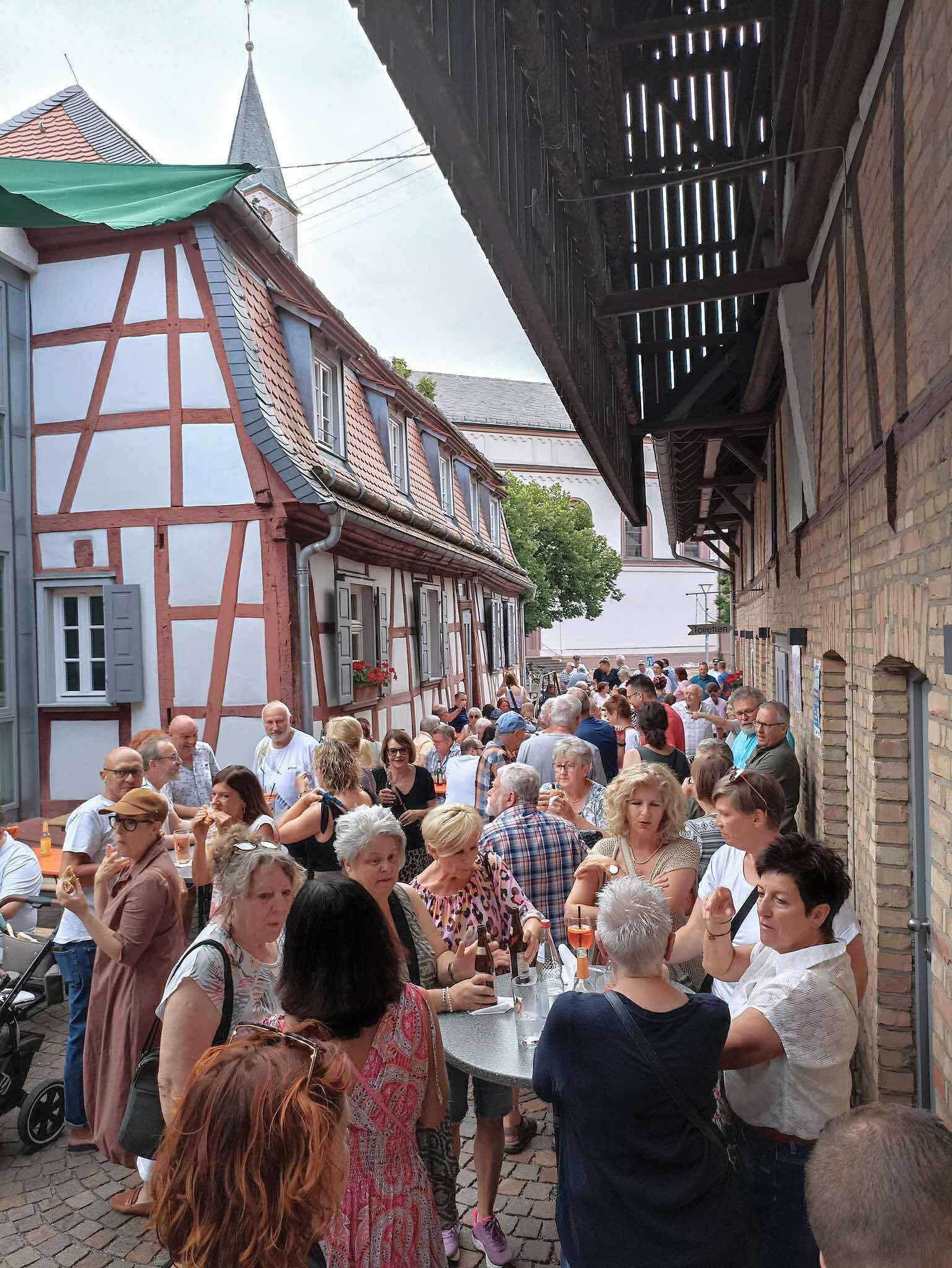 Gestern Abend genossen also zahlreiche Gäste bei bestem Wetter Essen und Trinken auf Spendenbasis, während Stehtische und Biertischgarnituren zum Verweilen einluden.